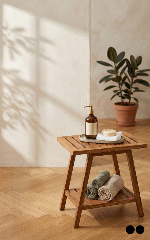 Multi-Purpose Wooden Stool & Side Table for Bathroom, Living Room & Home